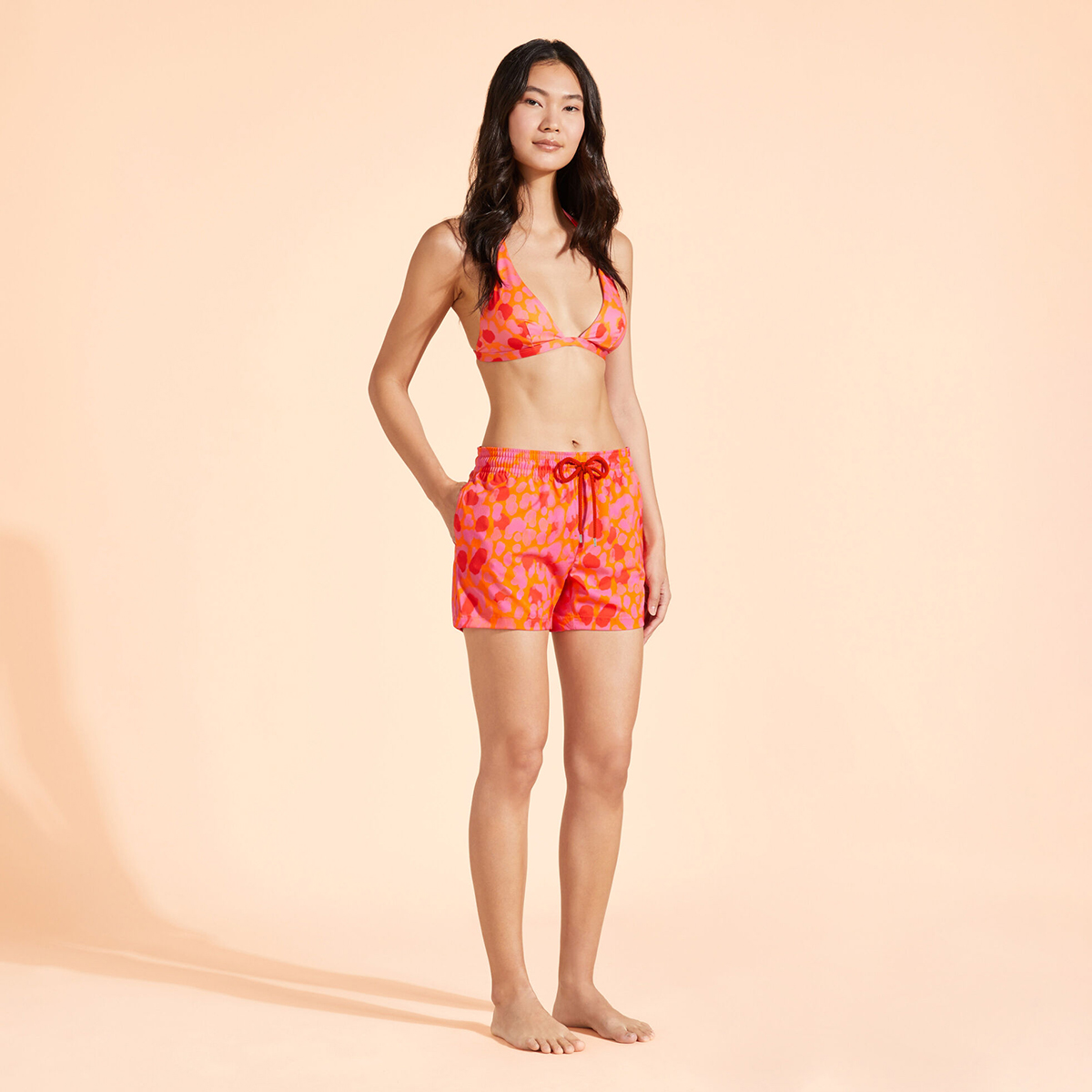 Yüzmek veya havuz başında uzanmak için mükemmel olan bu geri dönüştürülmüş poliamid ve elastan mayo şortları ile New Leopard baskı kombininizi tamamlayabilirsiniz.